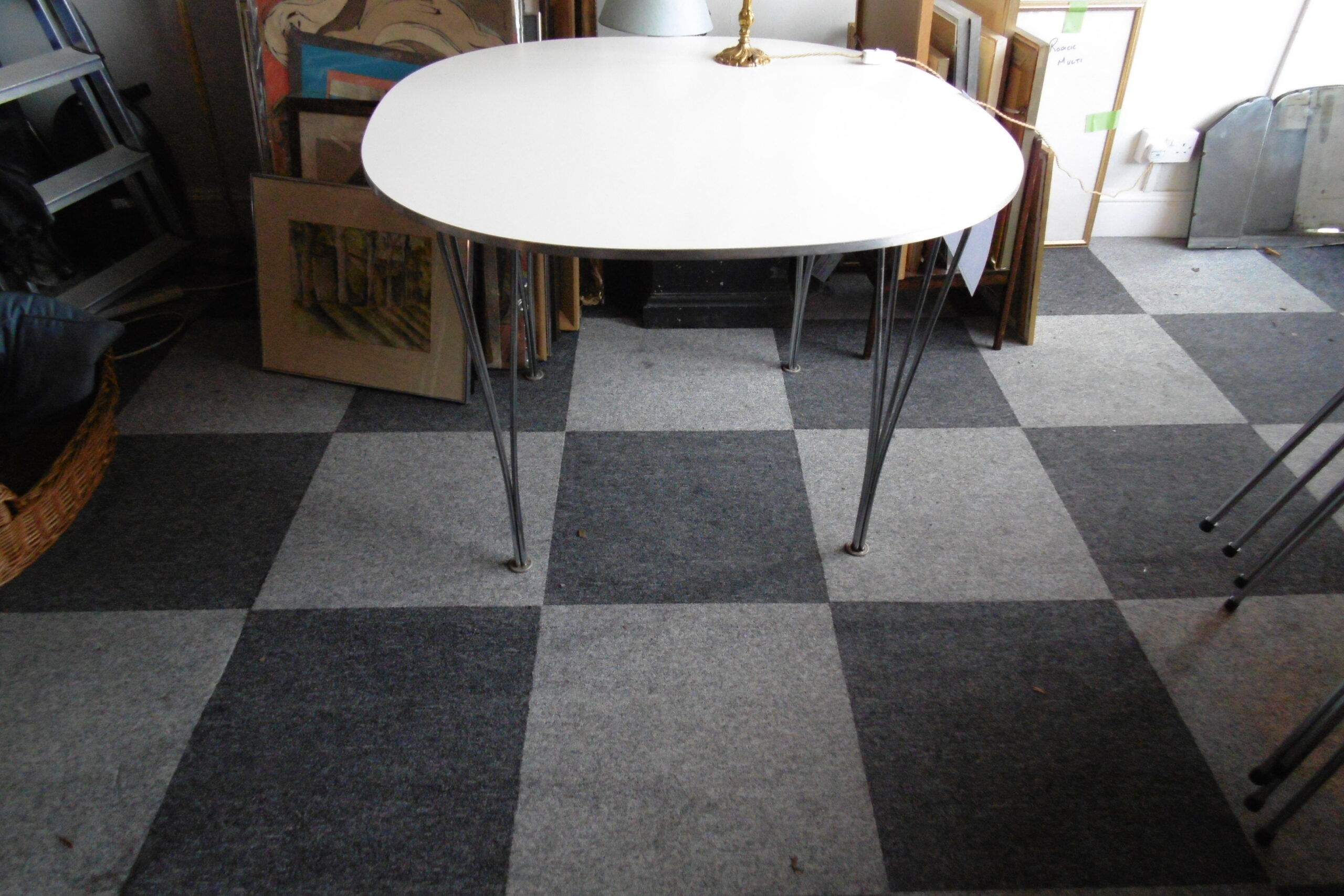 A 4 person “Supercircular” dining table designed by Piet Hein and made by Fritz Hansen
